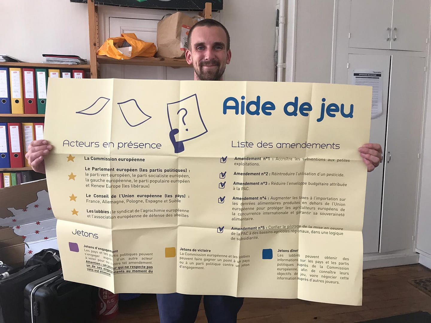 Panique à la Commission est un jeu de rôle pour comprendre les institutions européennes. En incarnant la Commission européenne, un pays membre de l’Union Européenne, un parti politique européen ou un lobby, ce jeu de sensibilisation citoyenne invite à la découverte du fonctionnement de nos institutions en suivant le projet de réforme de la politique agricole (PAC).