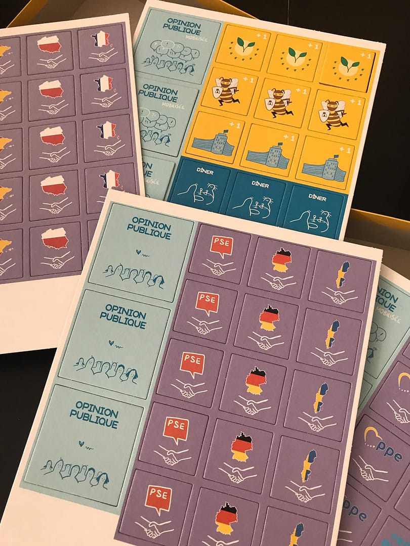 Avoir un bon réseau de production adapté à sa production ludique n’est pas une tâche facile. En effet, il faut bien connaître les différents acteurs du marché qui peuvent répondre aux besoins spécifiques de chaque jeux ou outils créés. Ainsi, nous avons aidé l’association Électeurs en Herbe à concrétiser le jeu qu’elle avait créé en finalisant leurs fichiers d’impression avec les spécificités techniques nécessaires à la production du matériel de jeu.